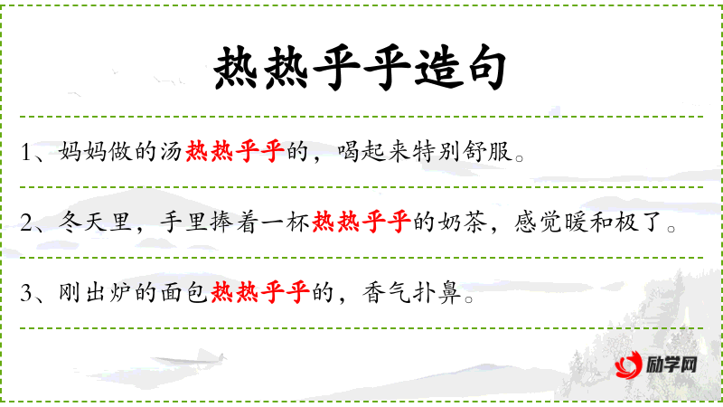 1. 【热热乎乎】 - 指事物温温热热或人待人亲切热诚、有同情心的或充满深情的状貌。