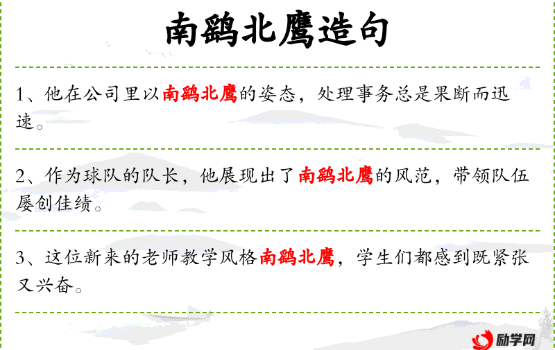 - 南鹞北鹰:成语,比喻风格迥异或方法不同。