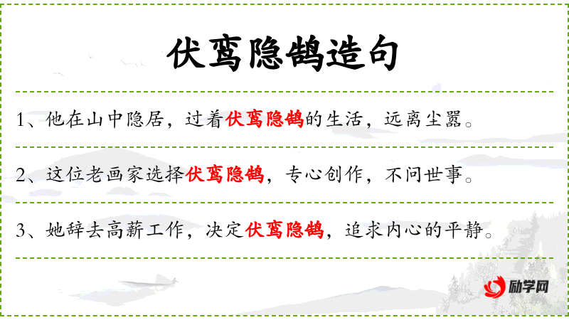- 伏鸾隐鹄:这个成语源自**传统文化,反映了古人对于隐居生活的向往和追求。