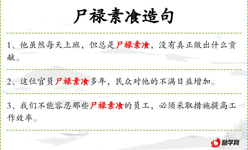 - 成语:“尸禄素飡”源自“尸位素餐”,是**传统文化中的成语,用于批评那些占着职位不做事的人。