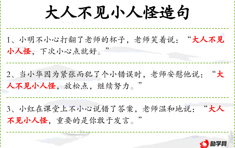- 文化意义:这个成语反映了**文化中对教育方式的一种期望,即成年人应该以宽容和理解的态度对待小孩子的错误。