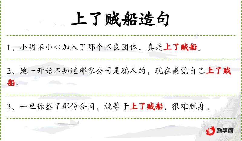 句子:“小明不小心加入了那个不良团体,真是上了贼船。”