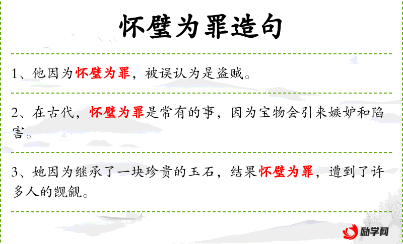 - 怀璧为罪:这是一个成语,源自**古代故事,意指因拥有珍贵物品而招致祸患。