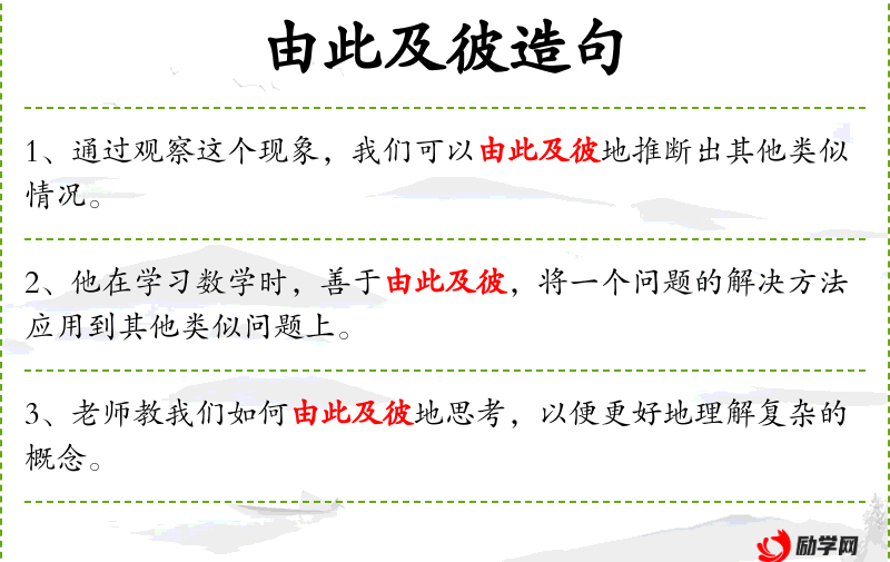 1. 【由此及彼】 - 此:这个;彼:那个。由这一现象联系到那一现象。