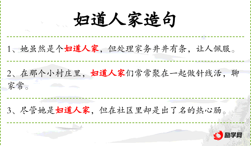 句子:“在农忙时节,妇道人家们也会下地帮忙,分担丈夫的辛劳。”