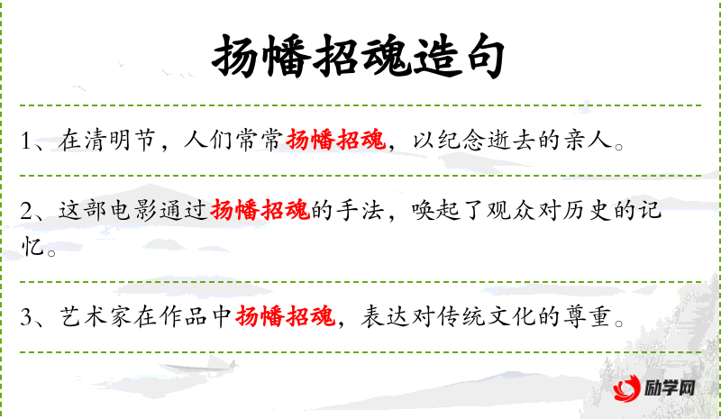 “扬幡招魂”可能是一种具有特定文化背景的表演形式,可能与某些*、历史或民俗活动相关。了解其背后的文化意义和俗对于深入理解句子含义至关重要。