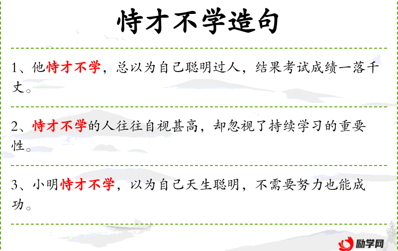 句子:“他恃才不学,总以为自己聪明过人,结果考试成绩一落千丈。”