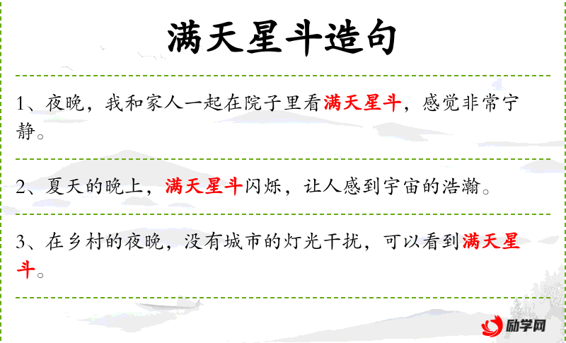 5. 【满天星斗】 星斗:星的总称。布满天空的星星。比喻事情多而杂乱。后形容文章华美。