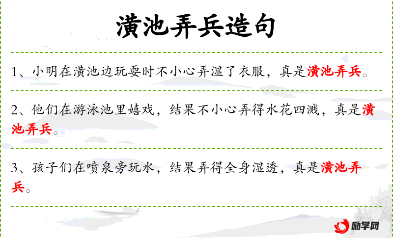 1. 【潢池弄兵】 潢池:积水塘;弄兵:玩弄兵器。旧时对人民起义的蔑称。也指发动兵变。