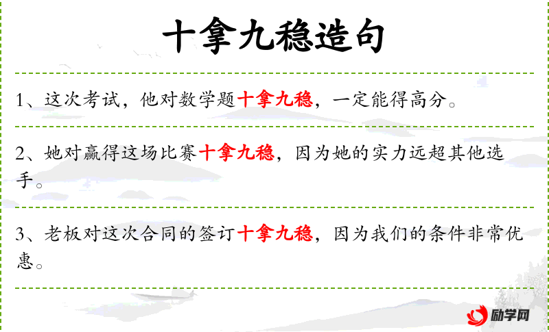 - 对学会这门新语言十拿九稳:固定搭配,表示非常有信心或把握。