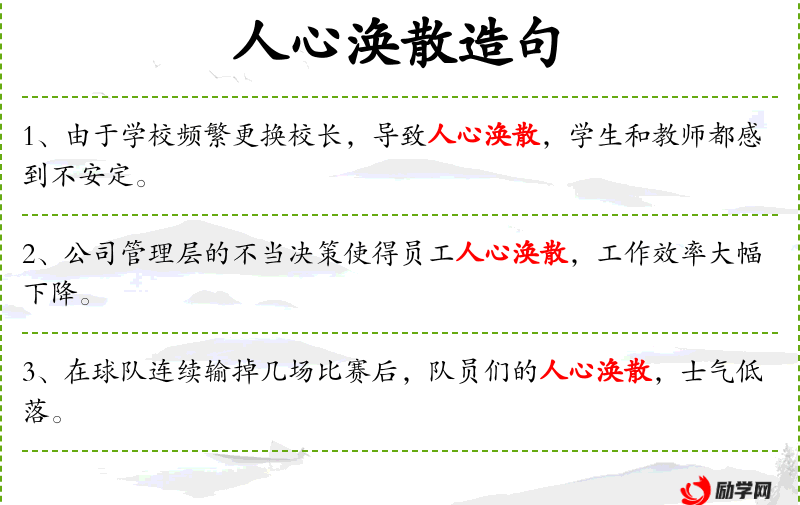 - 人心涣散:指团队成员的凝聚力下降,人心不齐。