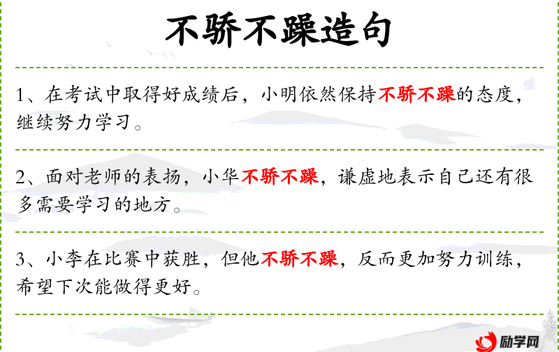 1. 【不骄不躁】 躁:急躁。不骄傲,不急躁。形容人态度谦逊,工作谨慎踏实。