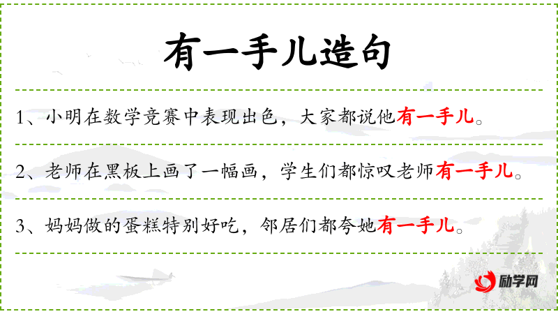 2. 【有一手儿】 - 有专长。男女之间不正当的关系。