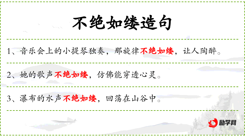 1. 【不绝如缕】 - 绝:断;缕:细线。多形容局面危急或声音、气息等低沉微弱、时断时续。