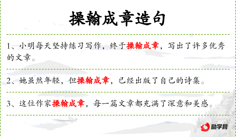 - 操翰成章:成语,意为文笔娴熟,能写出好文章。
