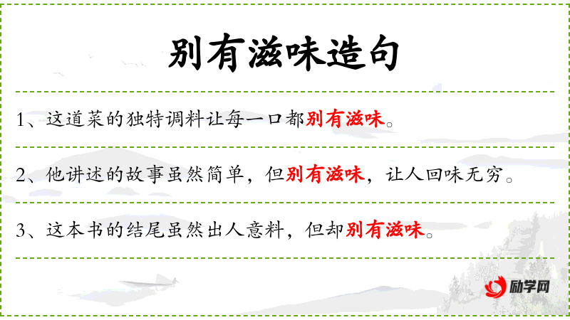 - 别有滋味:意味深长、耐人寻味