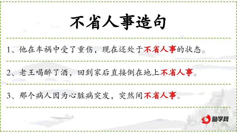 - 不省人事:失去意识,无法感知周围环境。