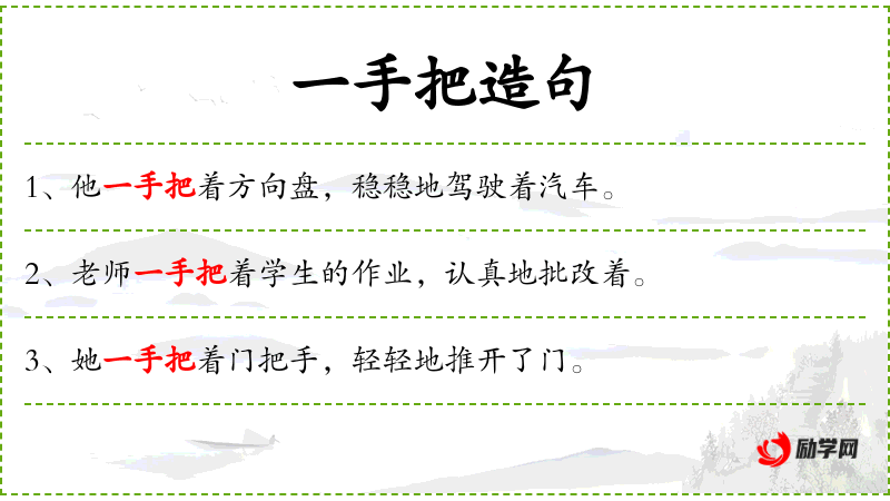 1. 【一手把】 - 一把。表示一手抓起的数量。