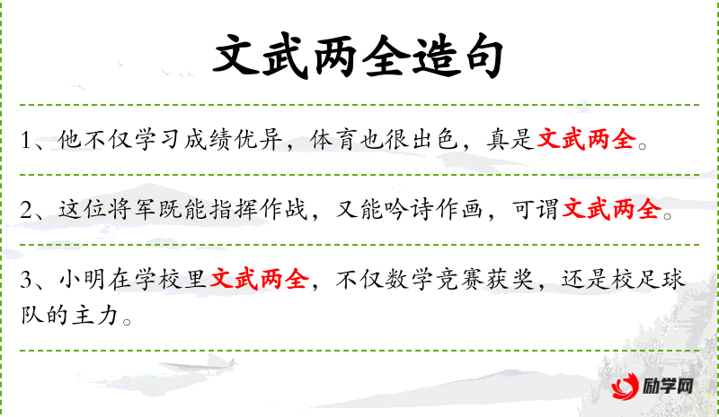- 文武两全:这个成语源自**传统文化,强调一个人的全面才能。