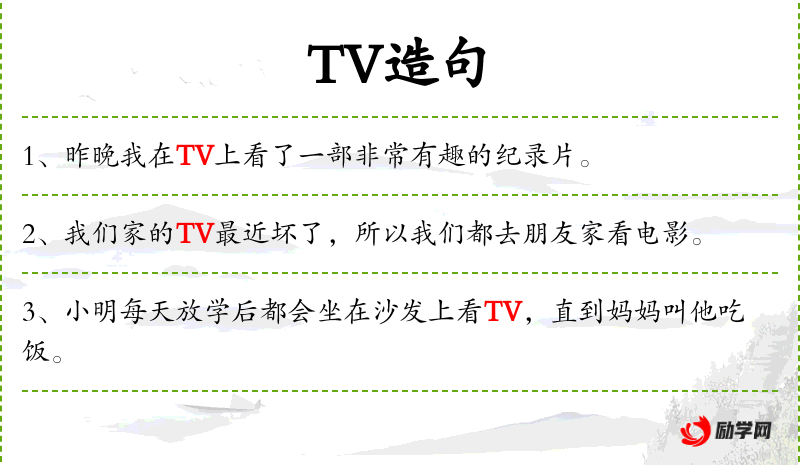 1. 【TV】 电视。也用在电视台的台标中,如CCTV(中国中央电视台)、BTV(北京电视台)。