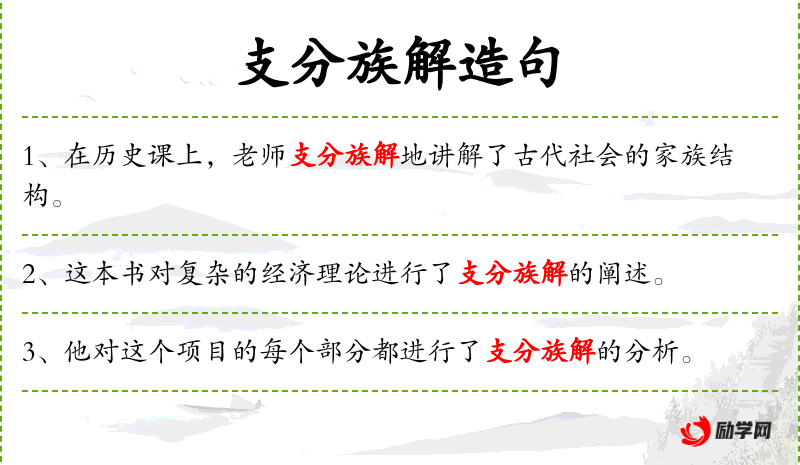 - 支分族解的:形容词短语,可能是一个专业术语或特定表达,意指详细、细致的分析。