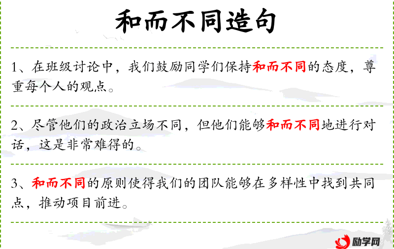 - 和而不同:指在保持和谐的同时尊重差异。