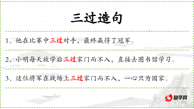 1. 【三过家门而不入】 - 指夏禹治水的故事,比喻热心工作,因公忘私。