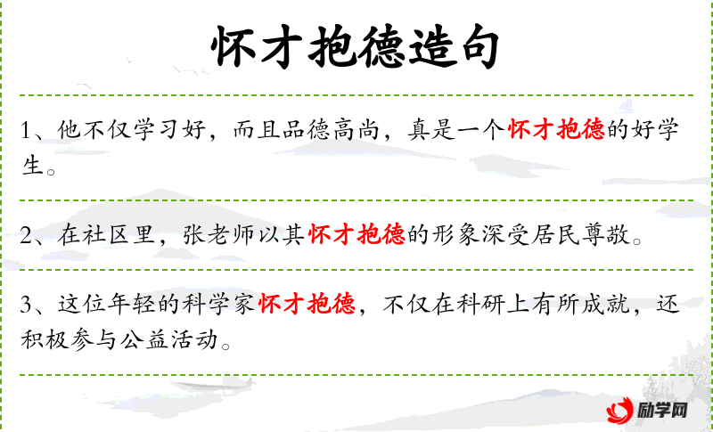 句子:“怀才抱德的学生总是能够在学*和生活中树立榜样。”