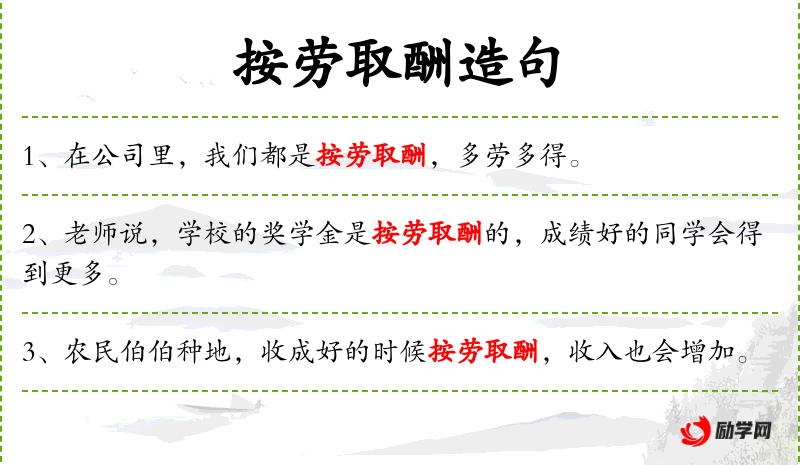 1. 【按劳取酬】 按照劳动贡献的大小领取报酬。