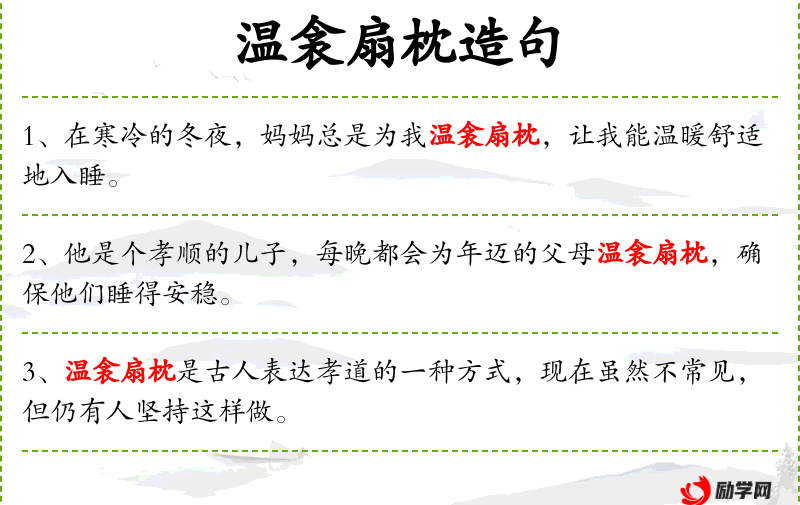 4. 【温衾扇枕】 - 指侍奉父母无微不至。同“温枕扇席”。