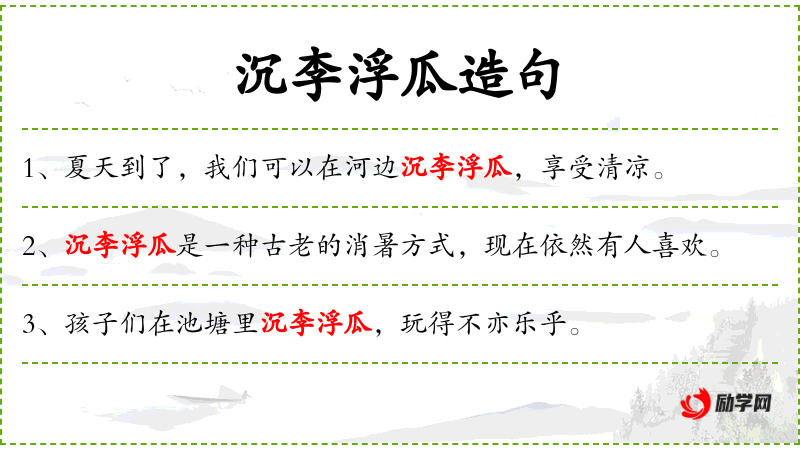 4. 【沉李浮瓜】 - 吃在冷水里浸过的瓜果。形容暑天消夏的生活。