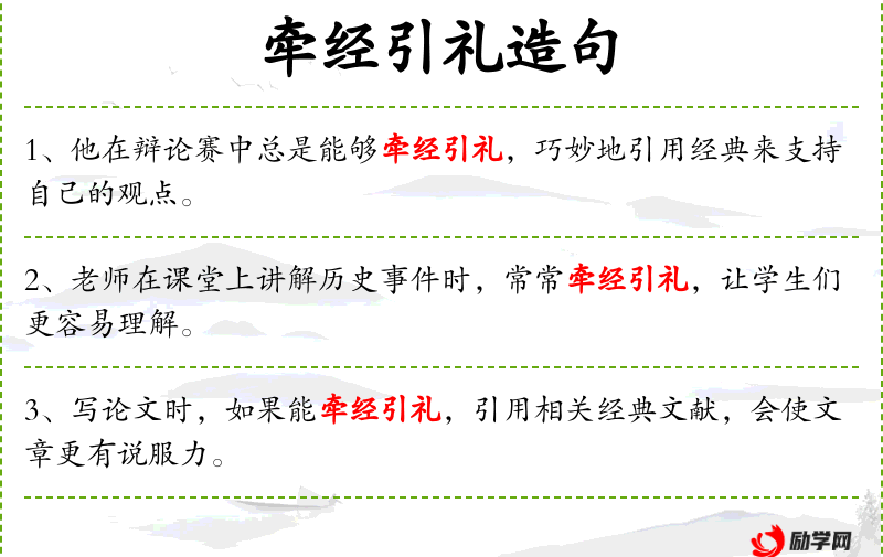 4. 【牵经引礼】 指援引经典。