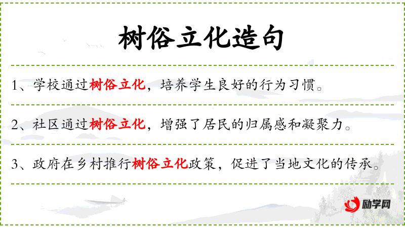 7. 【树俗立化】 树立风俗教化。