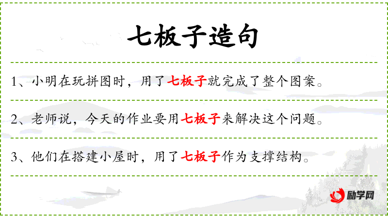 1. 【七板子】 - 亦作"七板儿"; 秦淮河上一种有篷而周围无走沿的小游艇。
