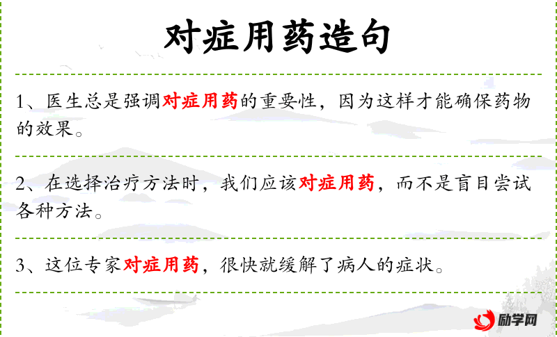 - 对症用药:指根据病情选择合适的药物或方法。