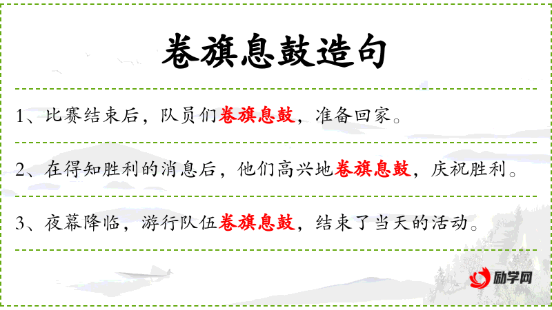 - 文化意义:“卷旗息鼓”这个成语体现了**传统文化中对战争和工作的态度,强调了和平与完成任务的重要性。