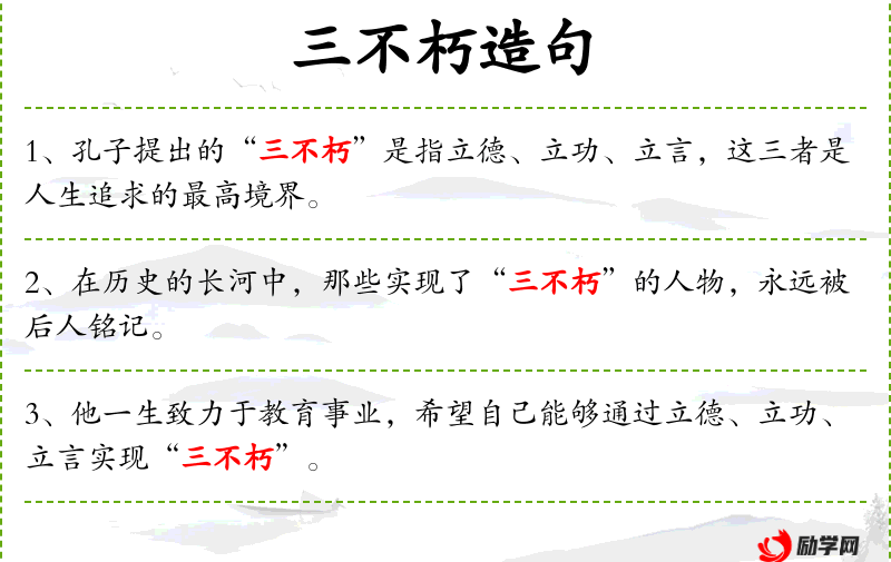 2. 【三不朽】 不朽:永不磨灭立。立德、立功、立言,这三件是永不磨灭的功德伟业。