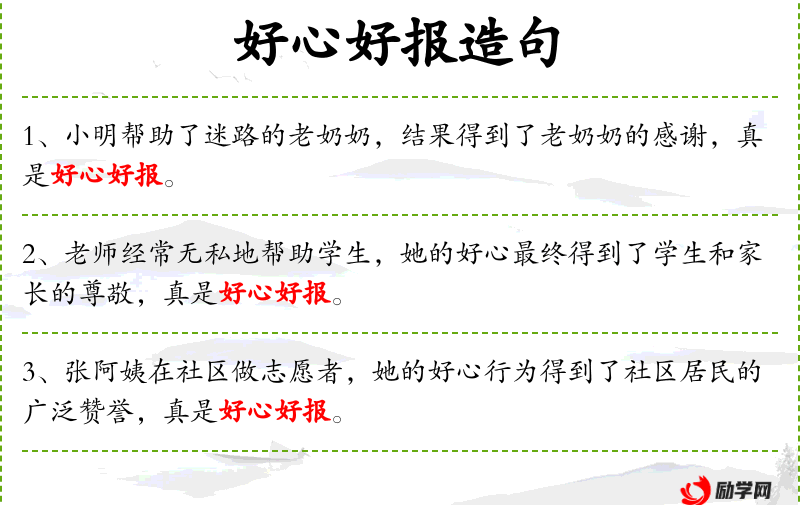 - 好心好报:善有善报,做好事会有好结果