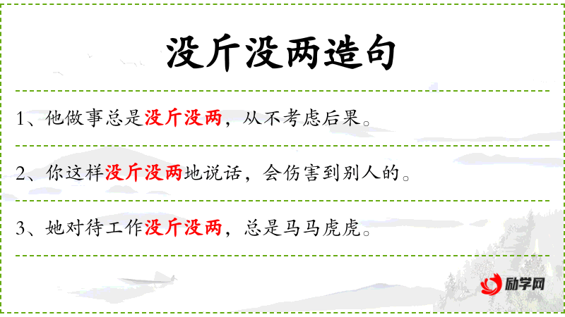 1. 【没斤没两】 - 没有大小、份量。指人做事不分轻重。