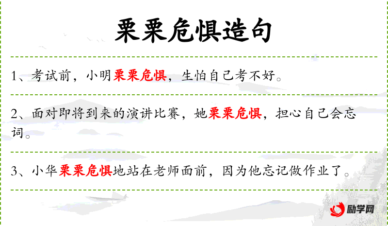 2. 【栗栗危惧】 - 栗栗:发抖的样子。形容非常害怕。