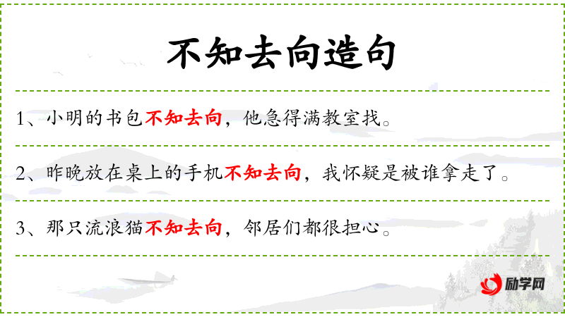 1. 【不知去向】 向:方向。不知道哪里去了。