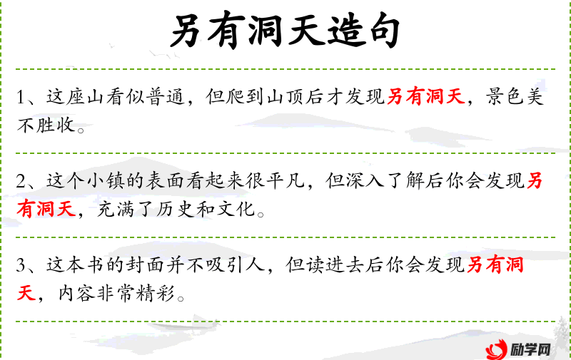 “另有洞天”这个成语源自**古代文学,常用来形容事物表面之下隐藏的深层次的美或价值,体现了中华文化中对深层次探索和发现的重视。