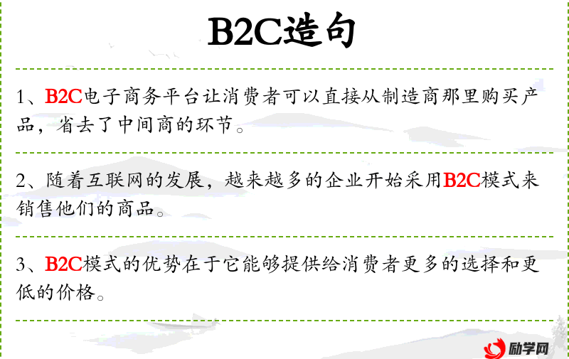 1. 【B2C】 指电子商务中企业对消费者的交易方式。