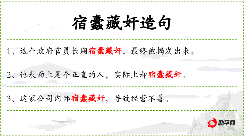 - 宿蠹藏奸:形容官员长期隐藏的恶劣行为。