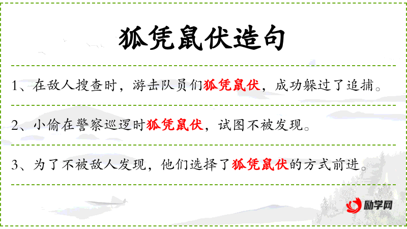 3. 【狐凭鼠伏】 - 象狐狸、老鼠那样潜伏在里面。