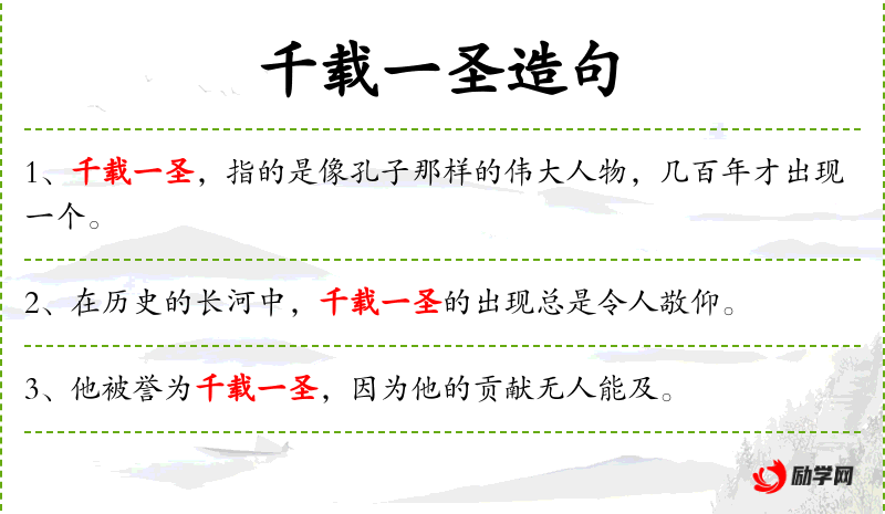 句子:“在历史的长河中,千载一圣的出现总是令人敬仰。”