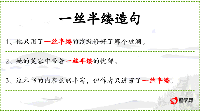 丝:蚕丝;缕:线。一条丝,半条线。形容非常细微。