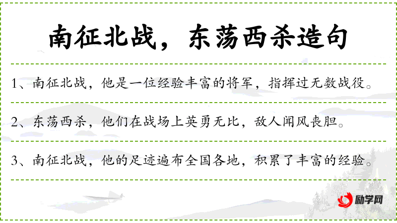 - 插入语:“南征北战”