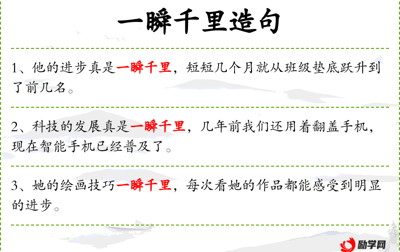 瞬:指极短的时间。一眨眼的时间就一千里路。比喻人进步或事业进展迅速。也形容速度很快。
