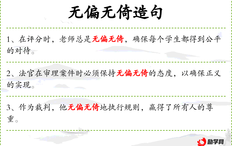 - 无偏无倚:表示公正无私,不偏袒任何一方。